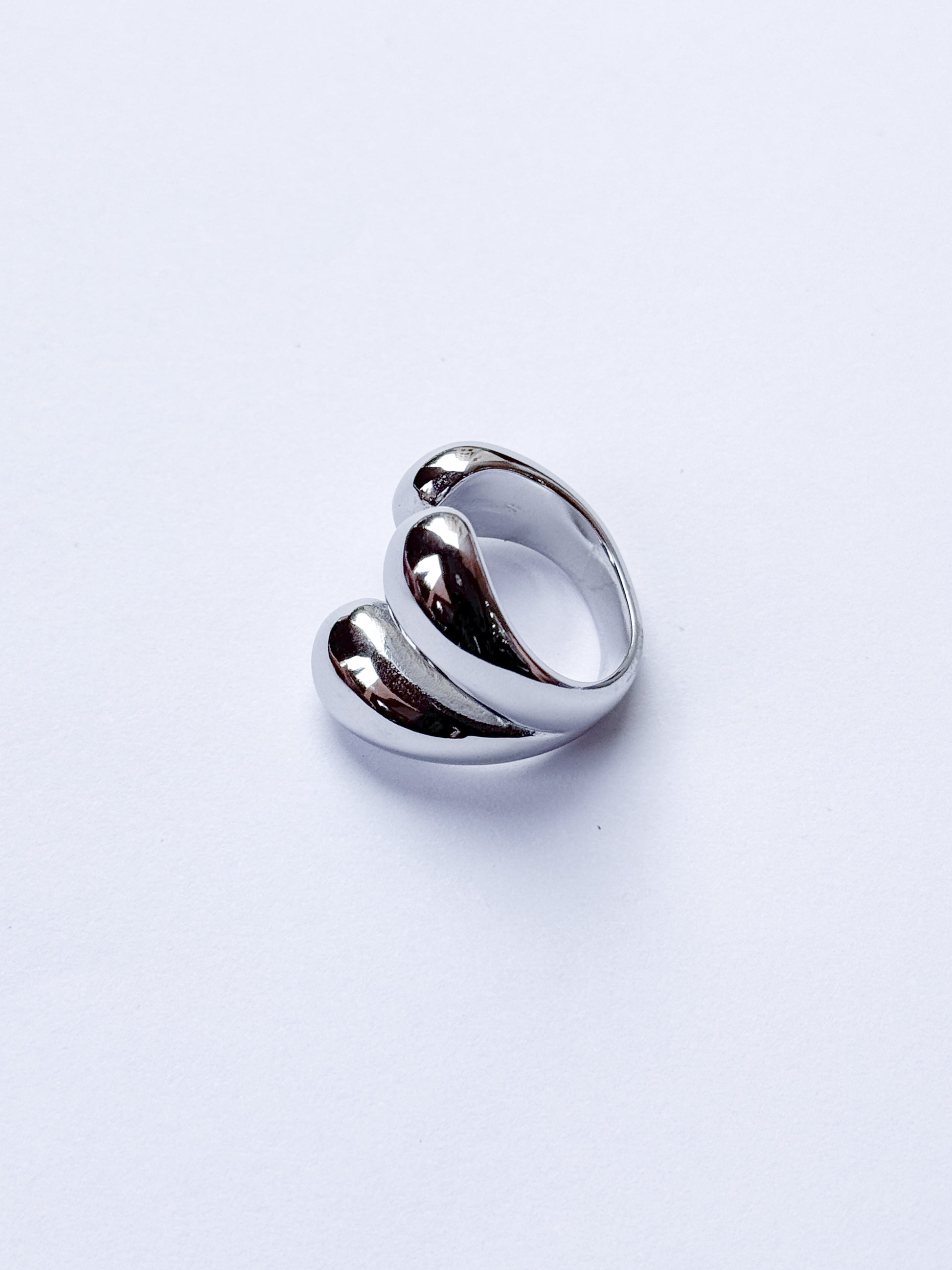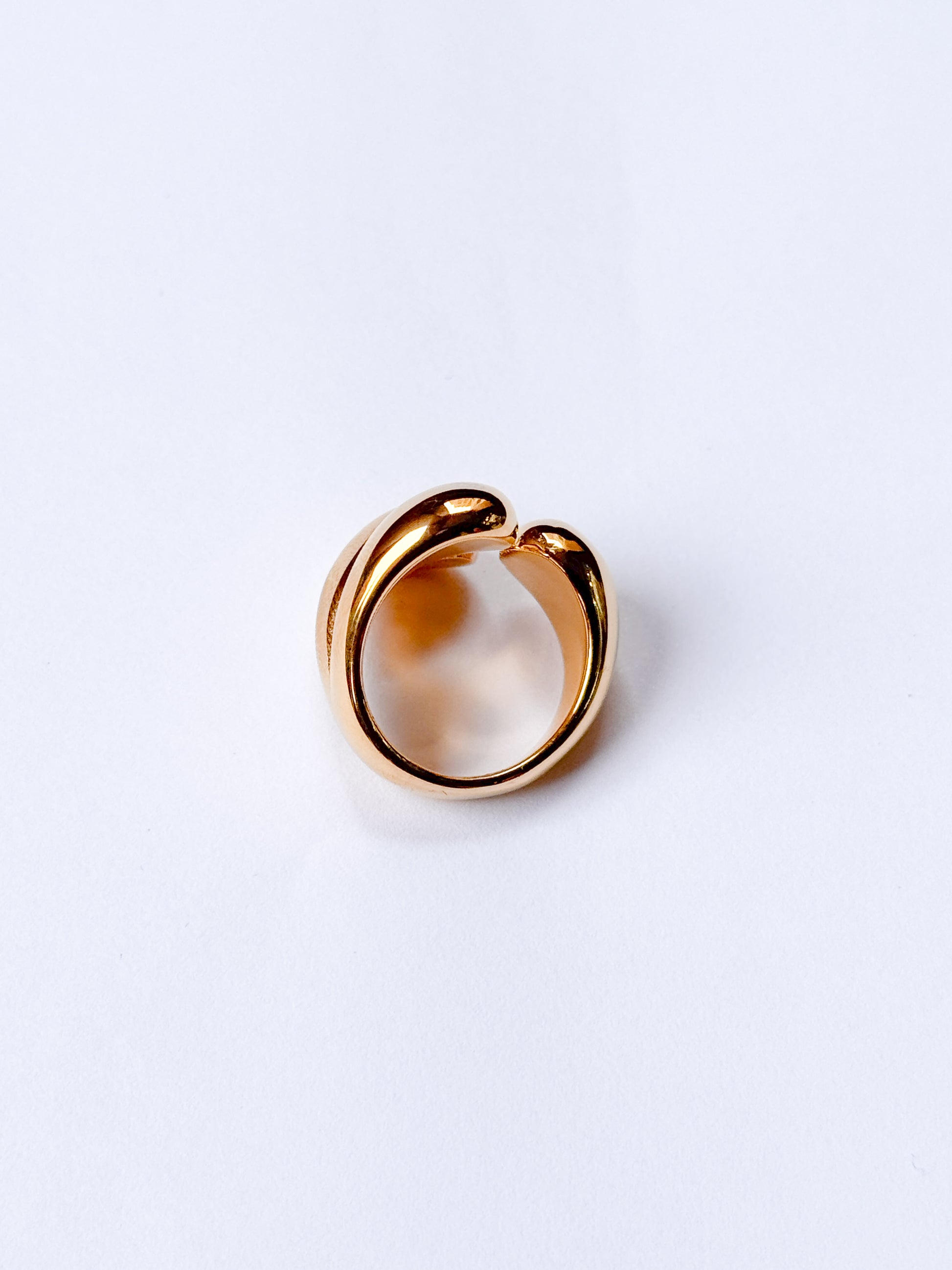 Anillo acero inoxidable dorado y plateado en estilo chunky entrelazado entre dedo