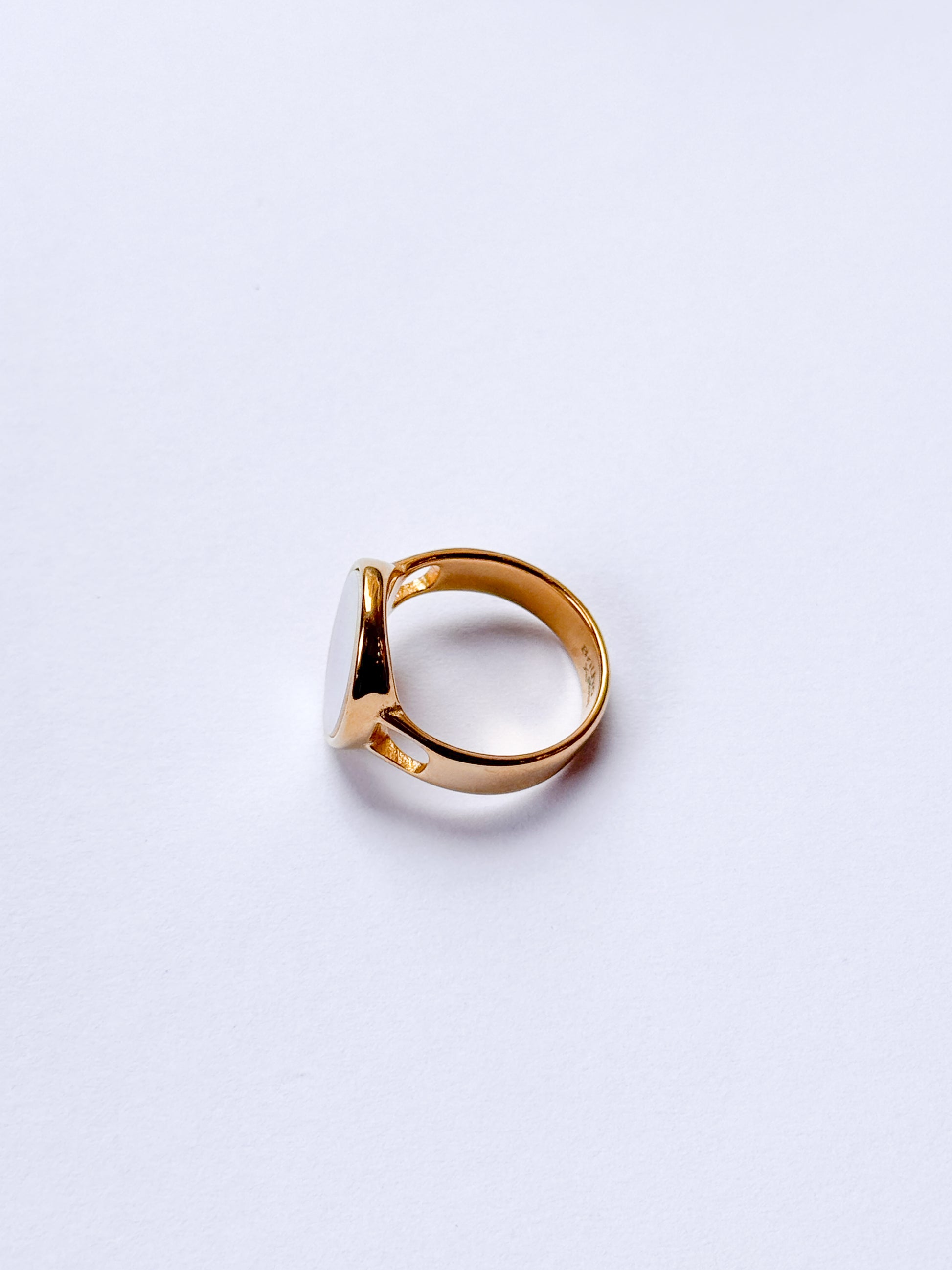Anillo acero inoxidable dorado con circulo ovalado en nácar
