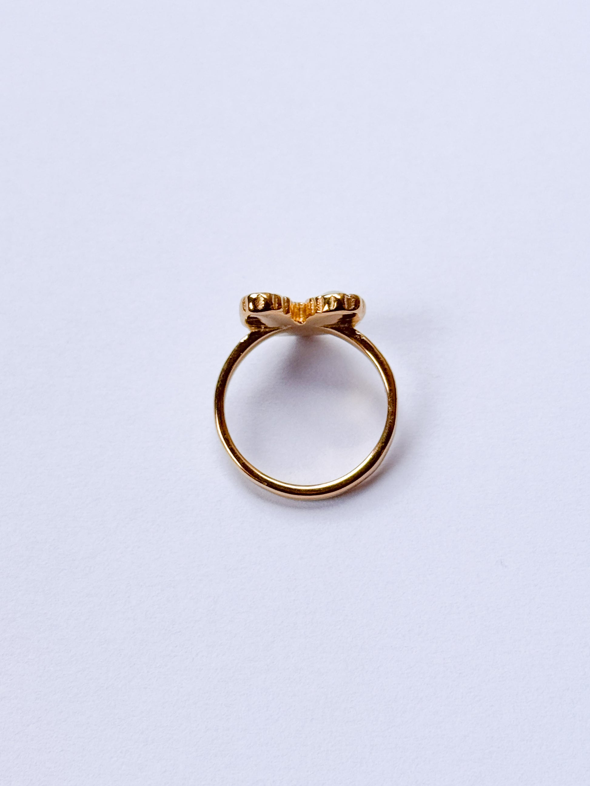 Anillo acero inoxidable dorado con corazón texturado transparente color blanco