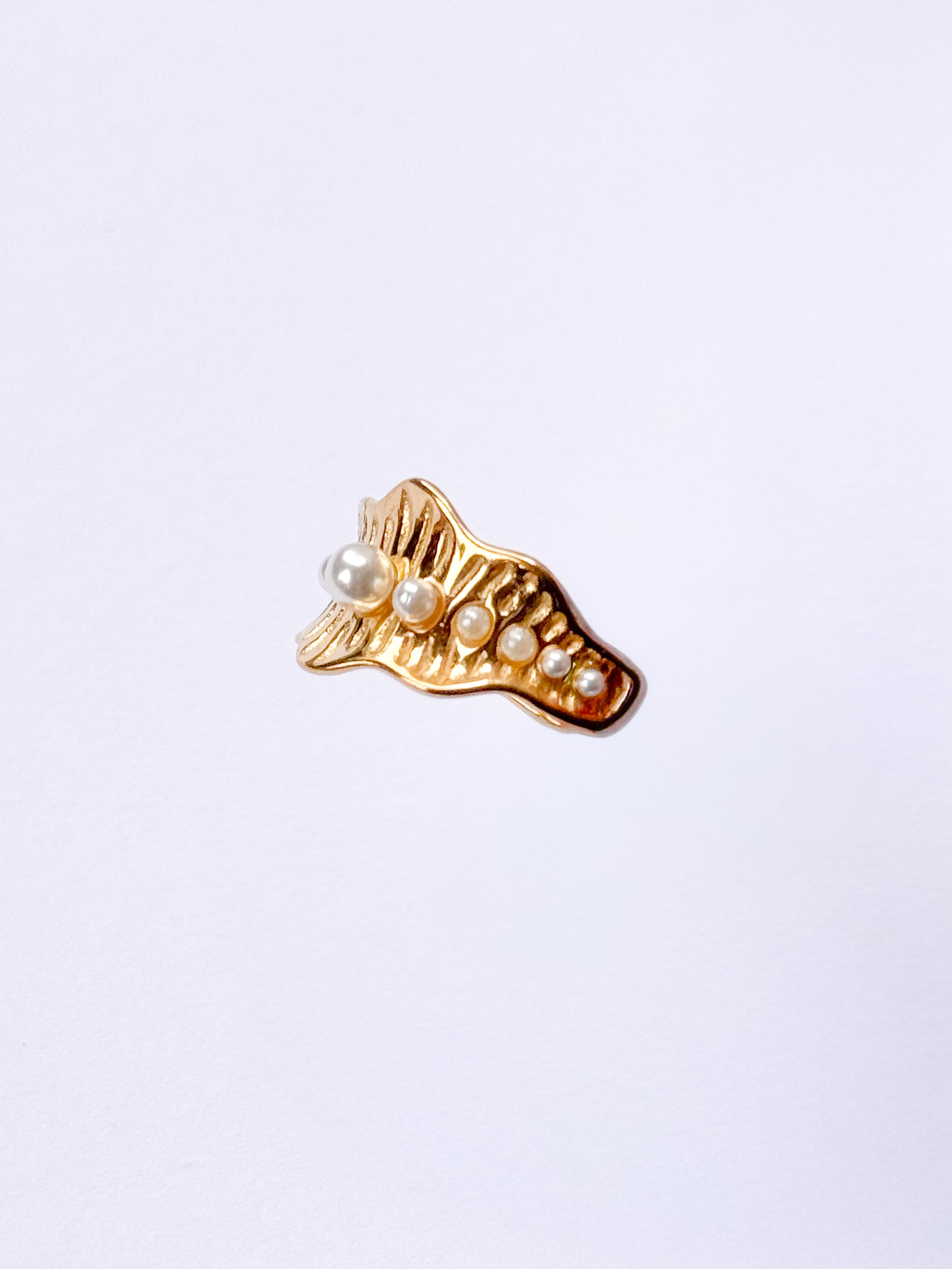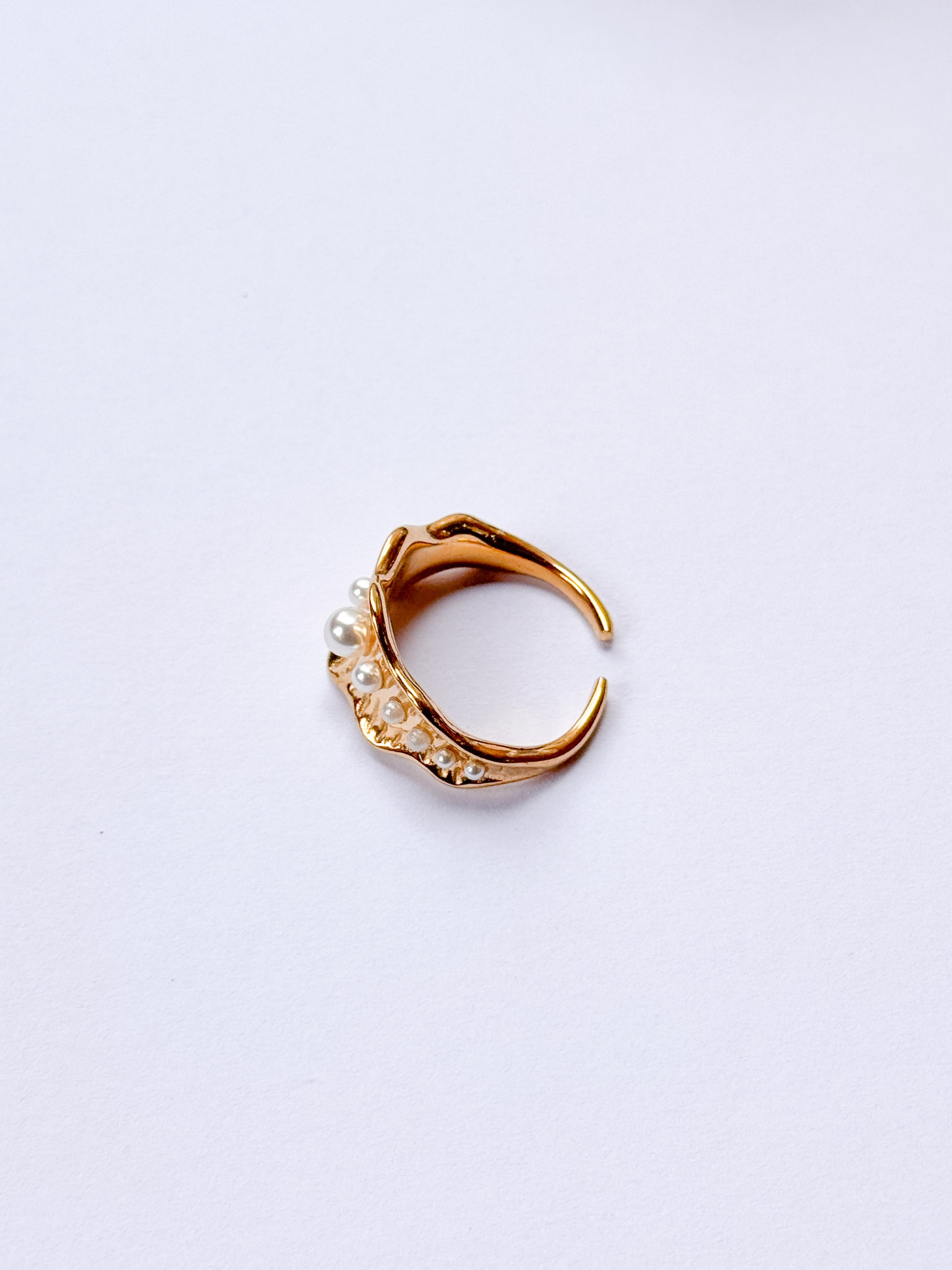 Anillo acero inoxidable dorado con textura en manto irregular con decoración perlada
