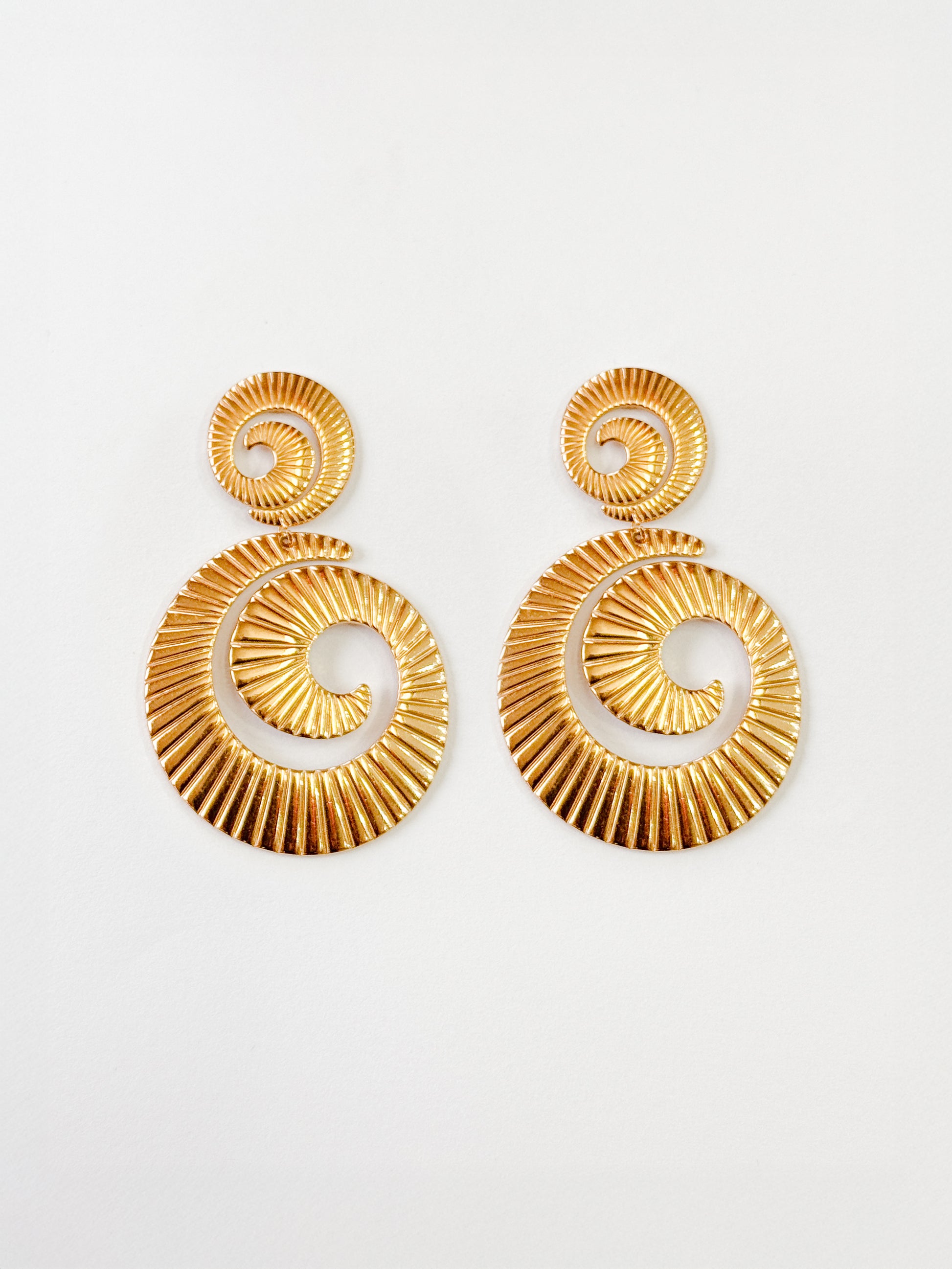 Aretes en acero inoxidable en color dorado con dos caracolas, dos tamaños