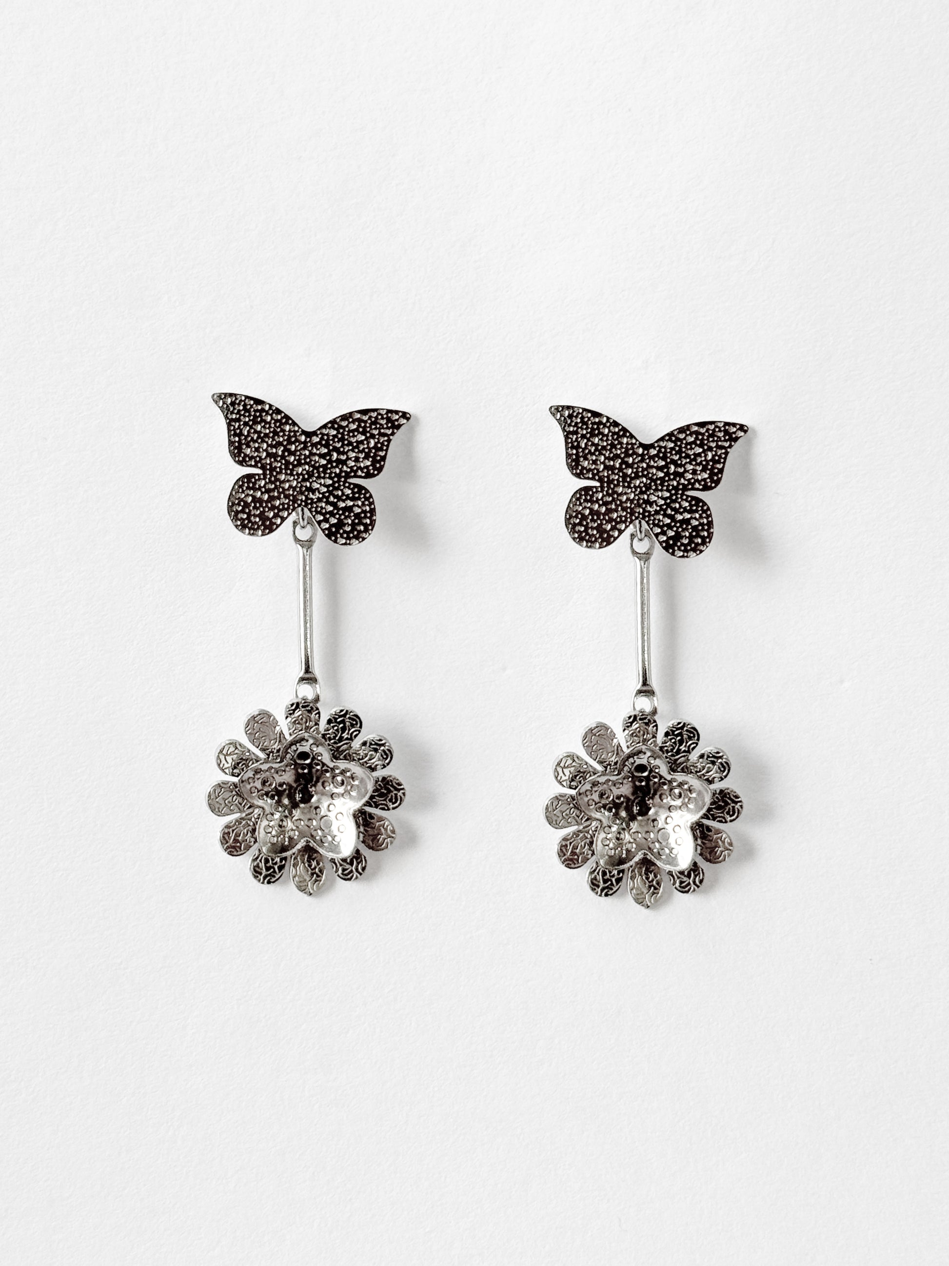 Aretes en mariposa con flor colgante