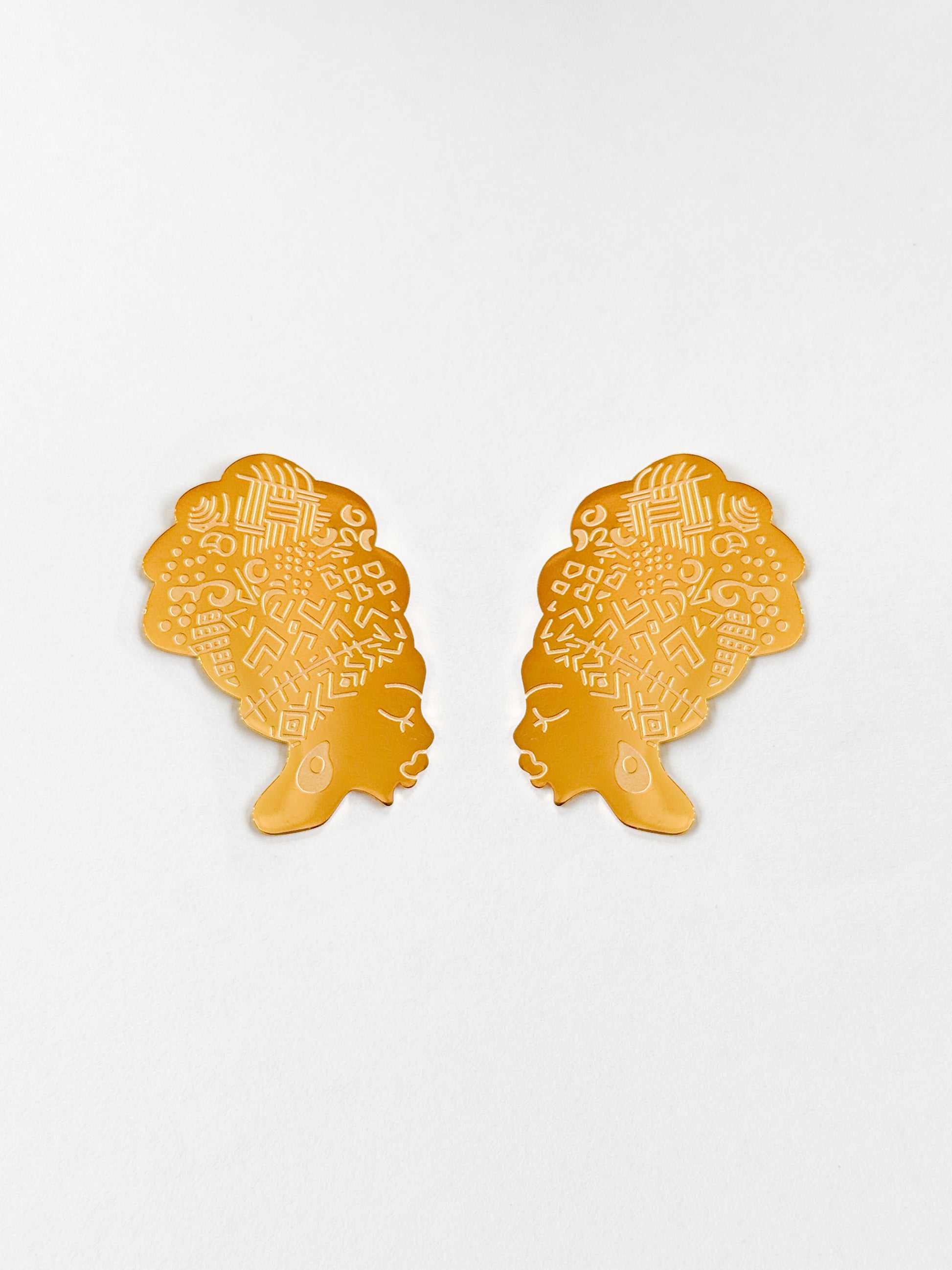 Aretes en acero inoxidable en forma de mujer con turbante en color dorado