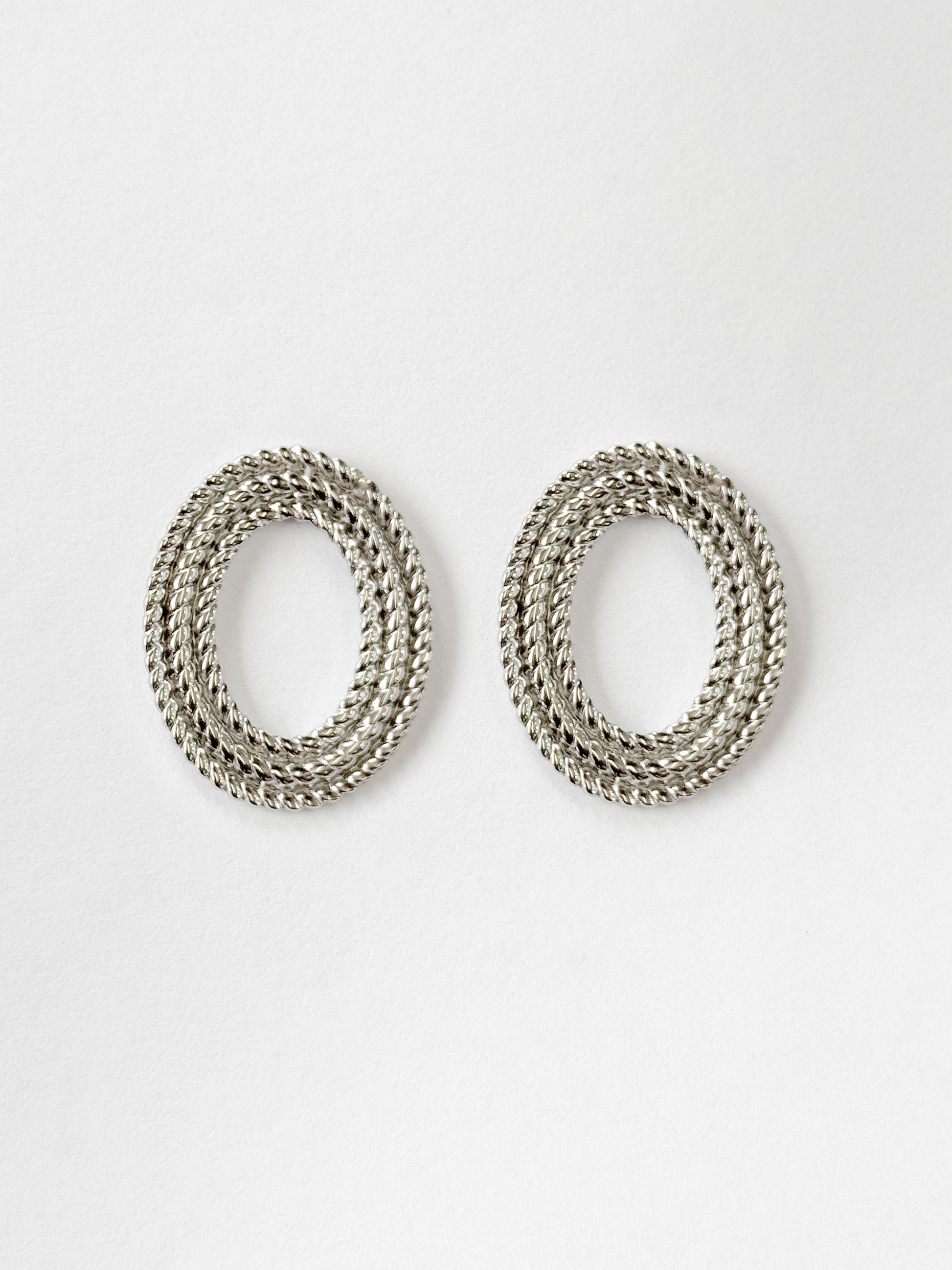 Aretes en acero inoxidable ovalado texturizado dorado y plateado