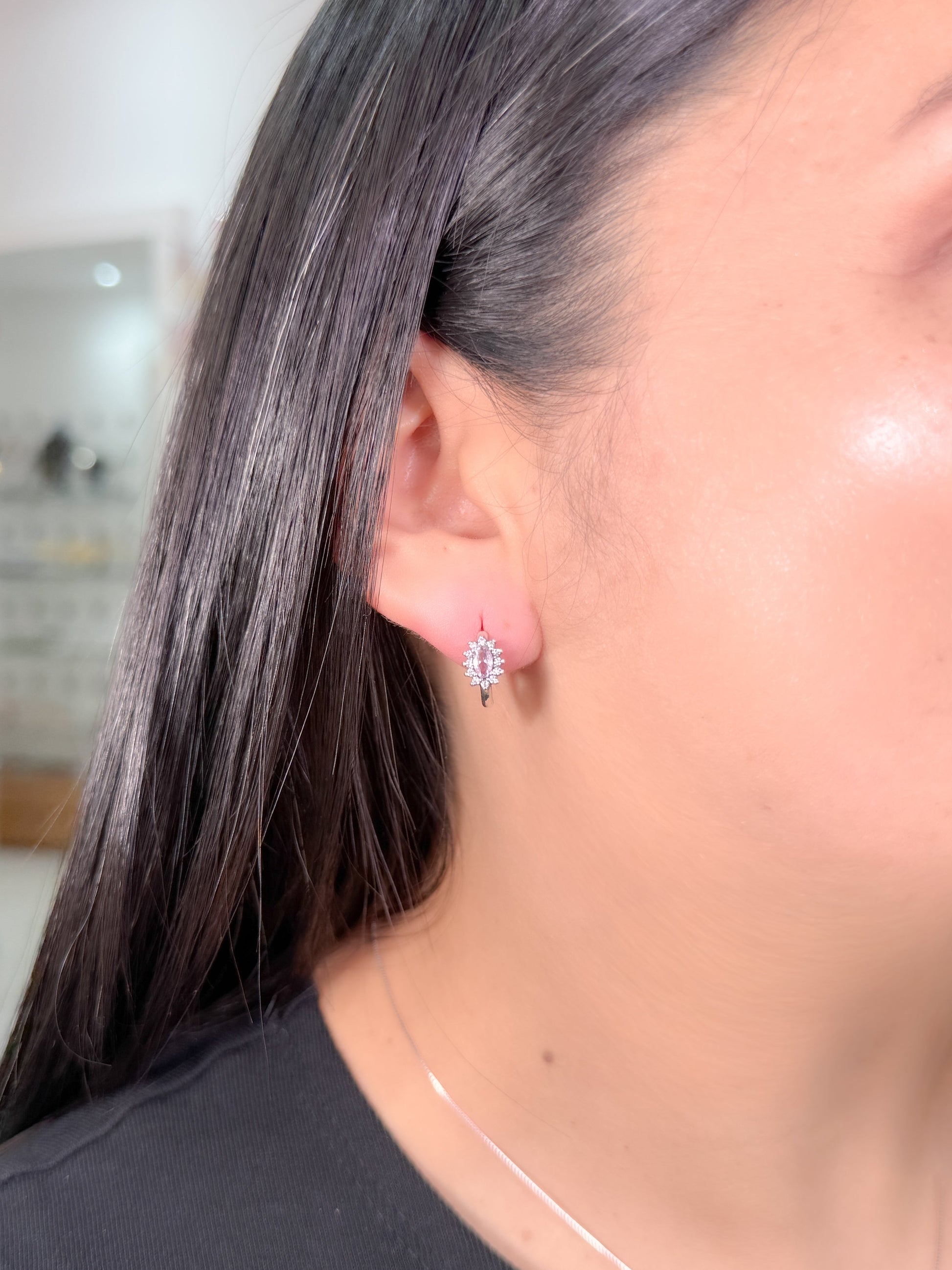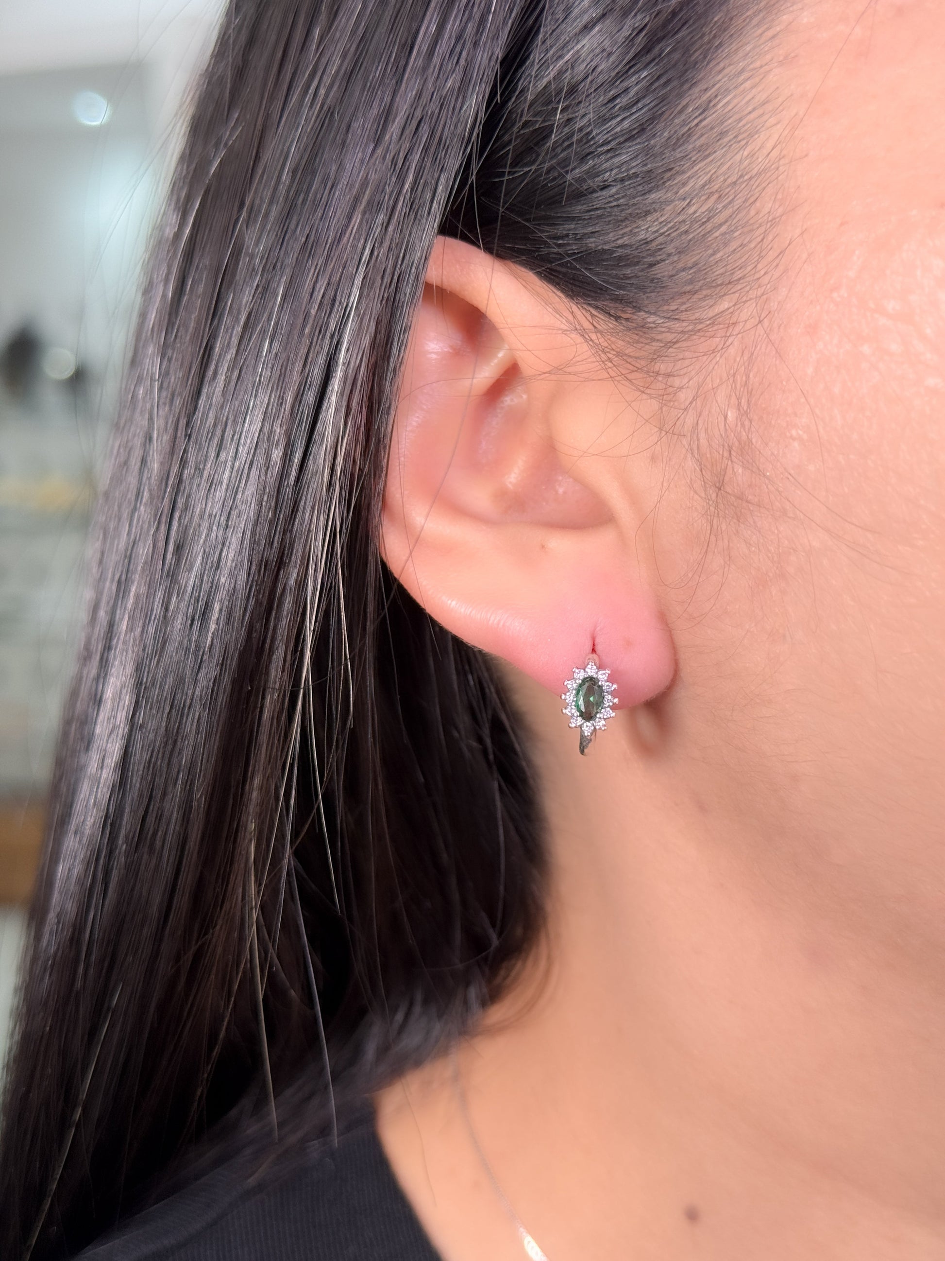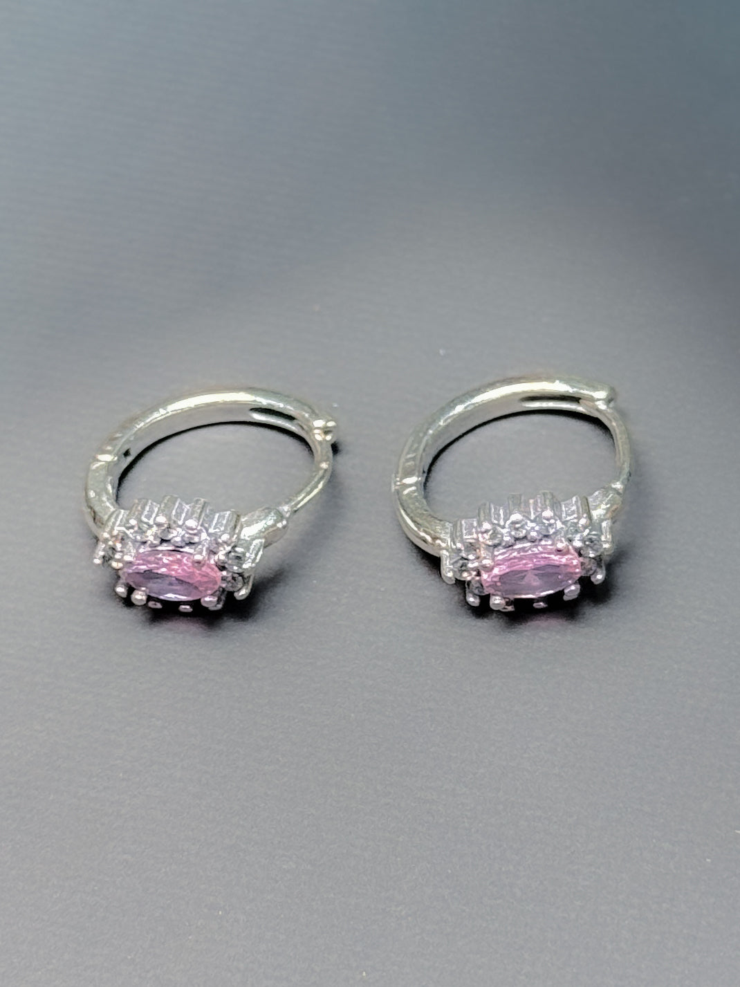 Candonga en plata ley 925 en flor brillante color rosa y verde esmeralda
