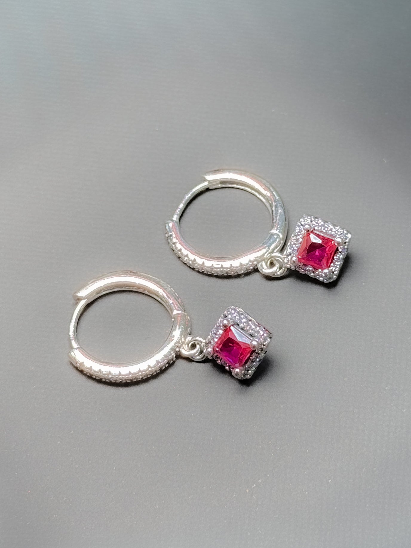 Candonga en plata ley 925 triangular, elegante de color rosa y fucsia