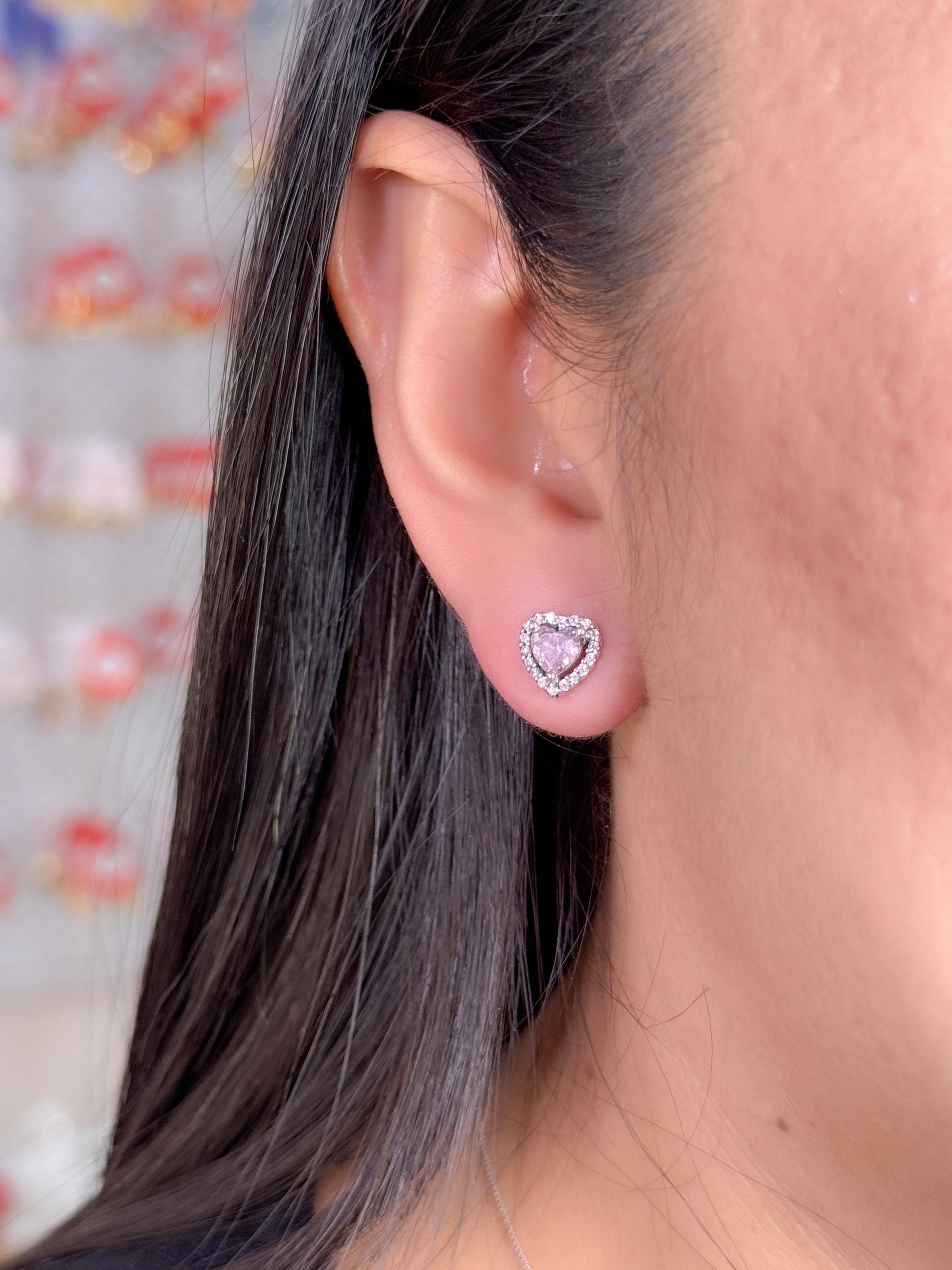 Topo de corazón brillante plateado, azul y rosa, con enmarcado brillante