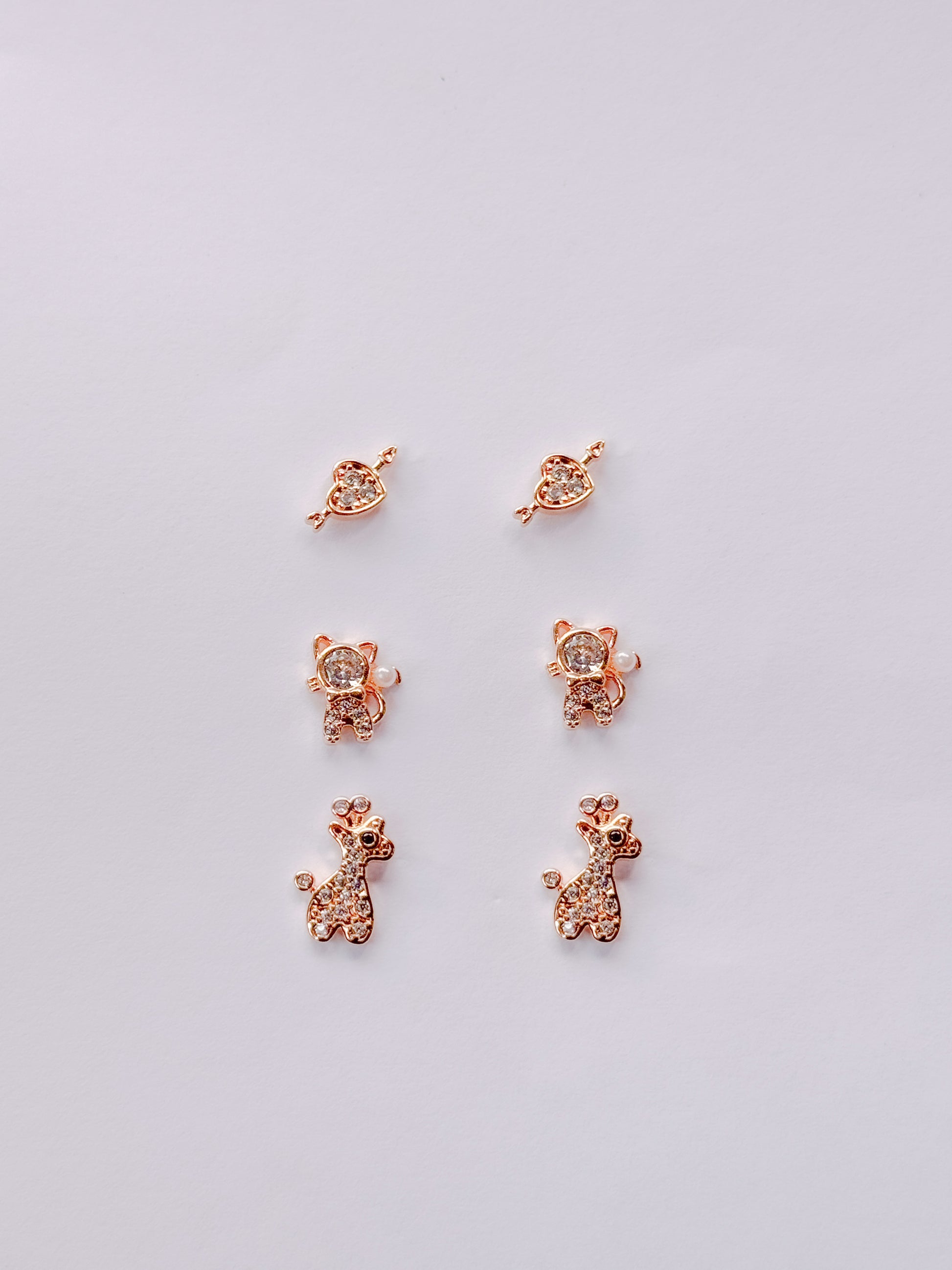 Set x3 (3 pares de topo) topos corazón flechado, gatos y jirafas dorado